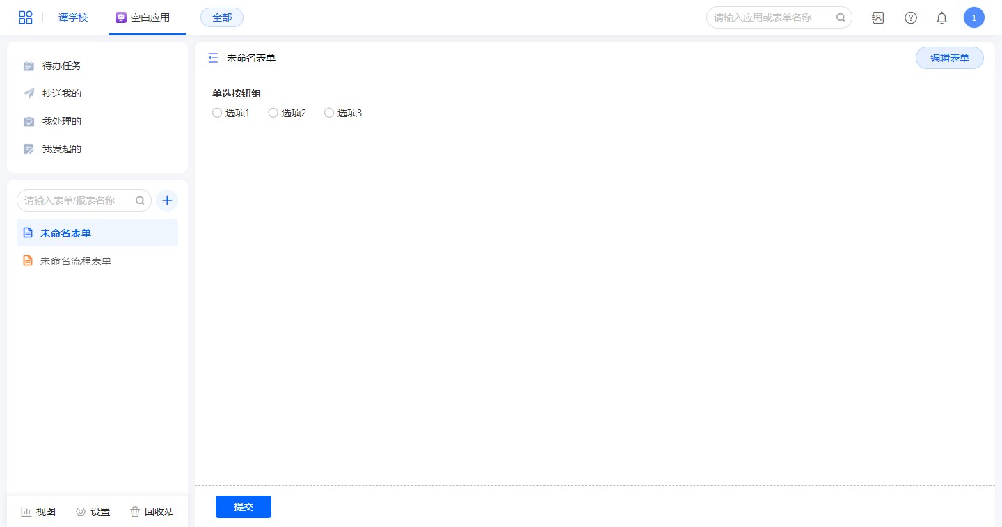 “单选按钮组”用于表单中单选的场景,在录入数据的时候直接选择选项。