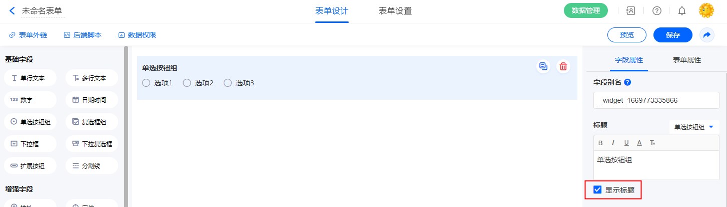 “标题”可以修改字段名称。