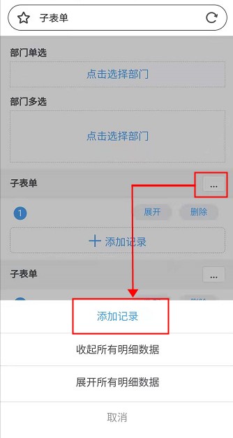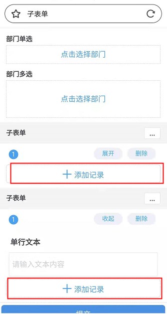 批量创建即可以在当前子表单任意添加记录,只需点击添加记录。