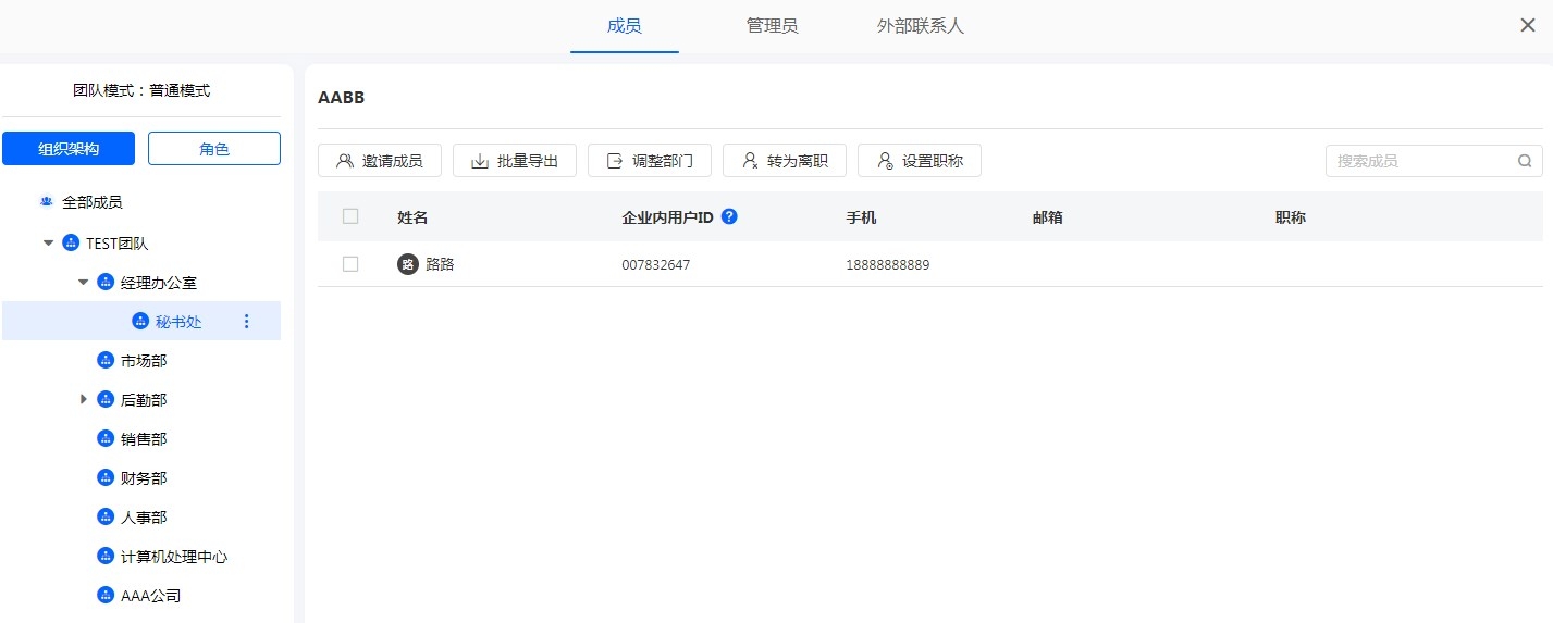 下图为用户路路所在部门: