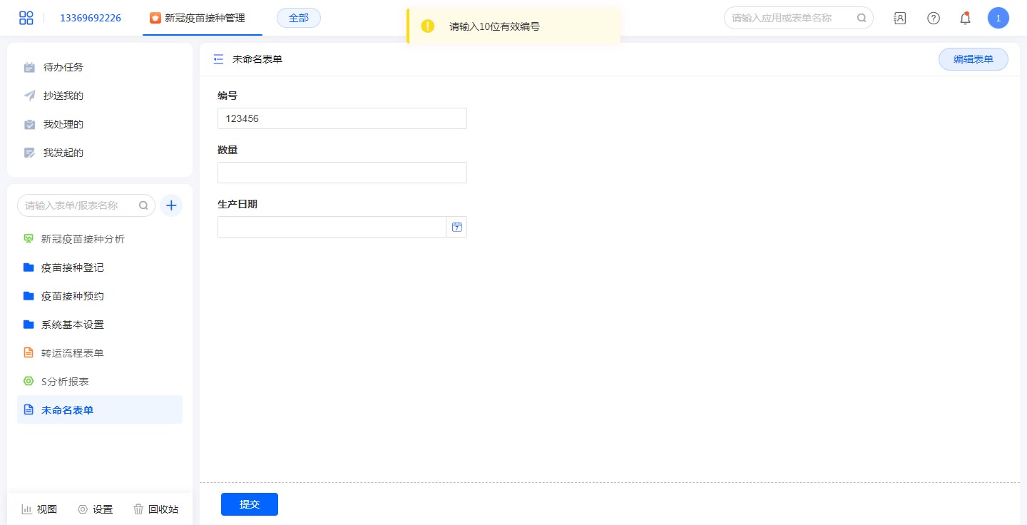 • 公式为:LEN(编号)==10。表示编码为10位时,才可以提交数据。
