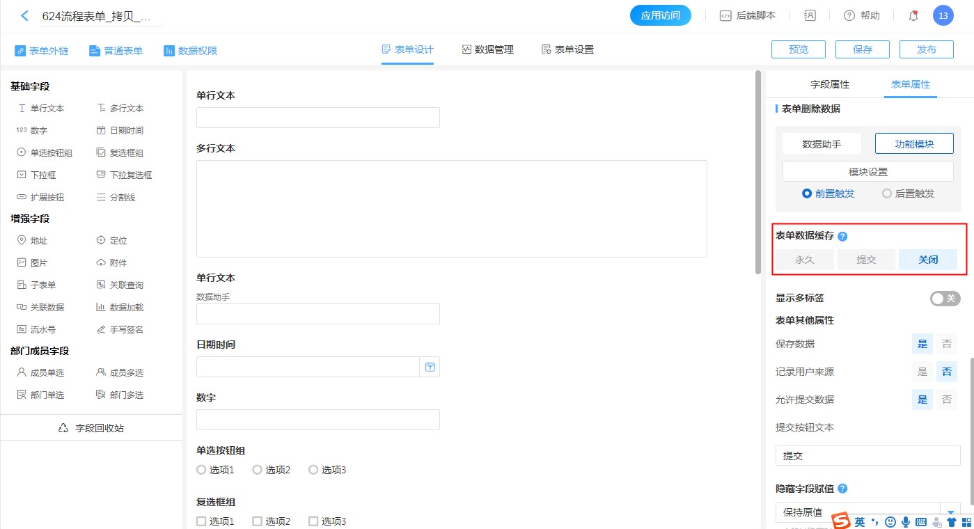当选择永久缓存和提交缓存时,可以设置缓存全部字段或缓存指定字段。