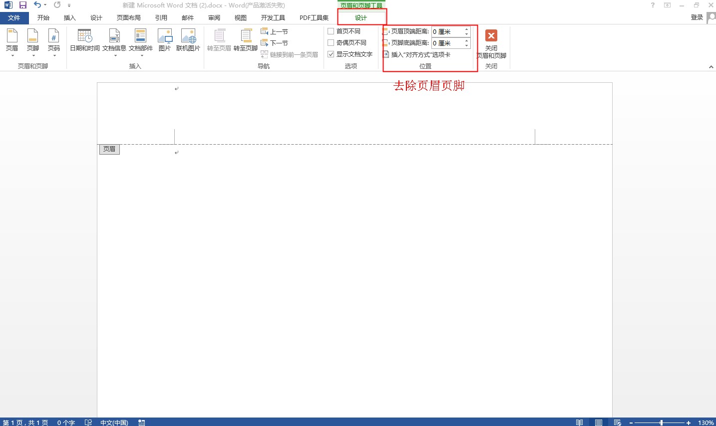 操作方法:【双击页眉页脚的位置】-【将页眉到顶端的距离/页脚到底端的距离都设置为0】-【关闭页眉页脚】