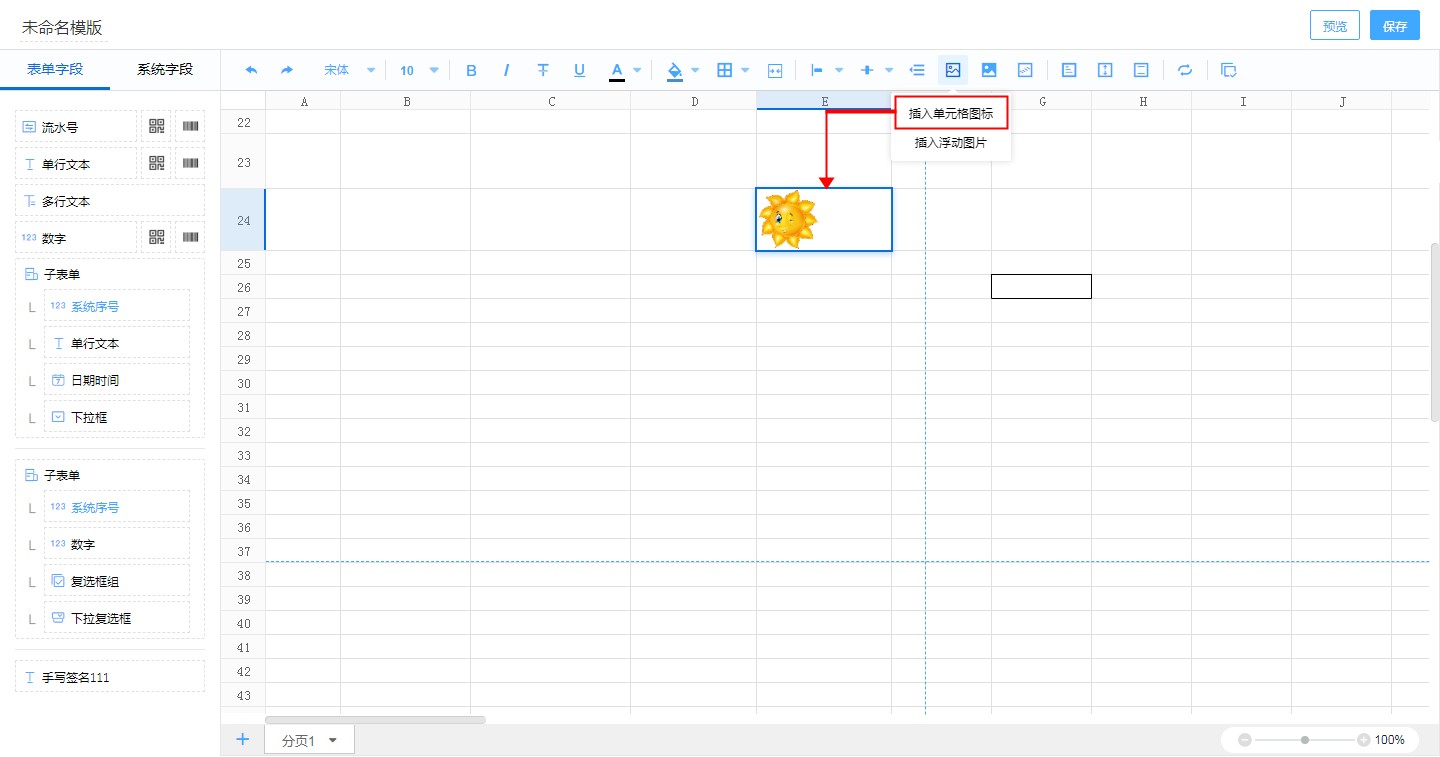 • 不支持图片类型的字段,如图片、二维码、手写签名等。