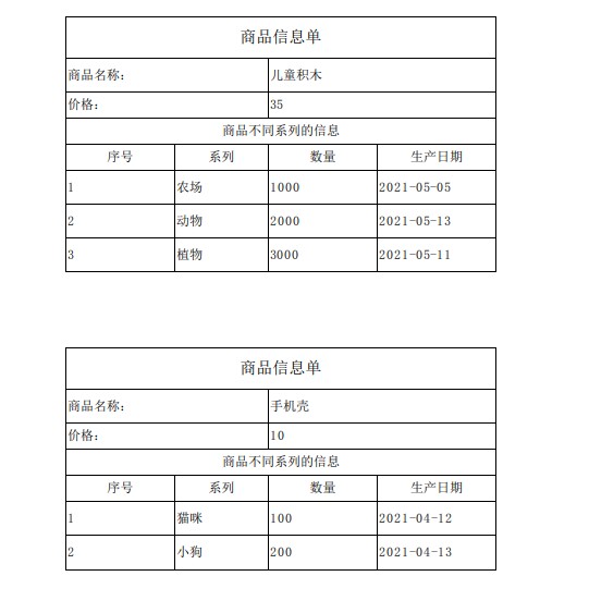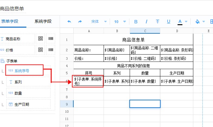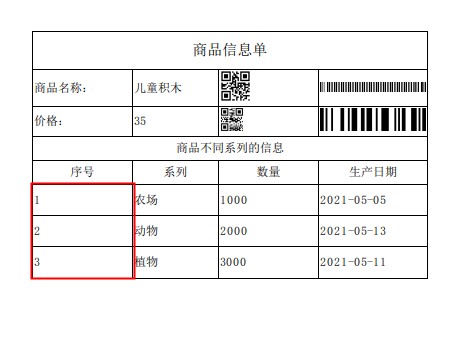 • 通过编辑好的自定义打印模板进行打印,可以看到子表单每条子数据所对应的序号。