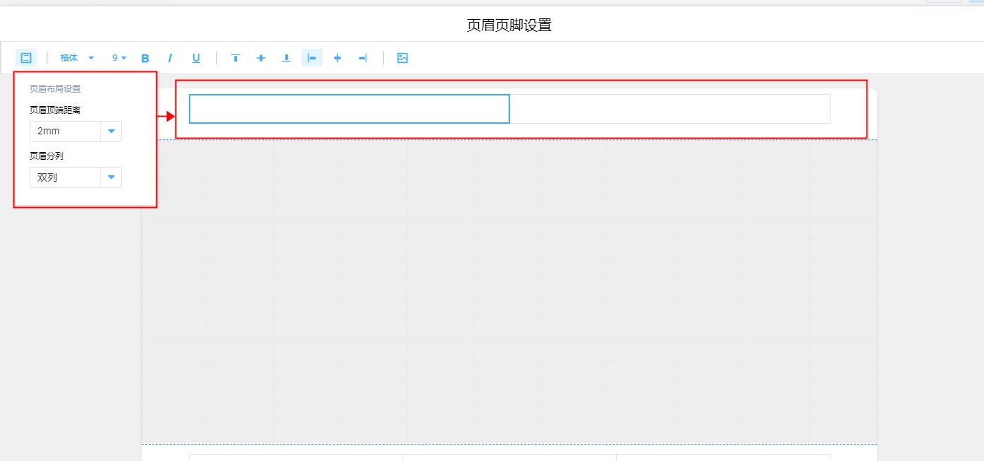 • 单击页眉页脚图标,进入页眉页脚设计面板。