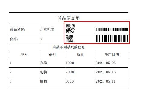 • 通过编辑好的自定义打印模板进行打印,可以看到单行文本或数字控件打印的二维码或条形码。