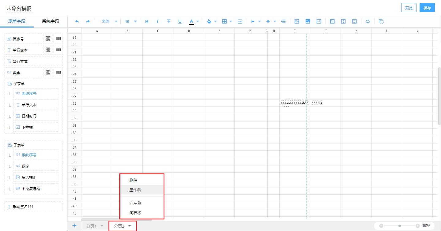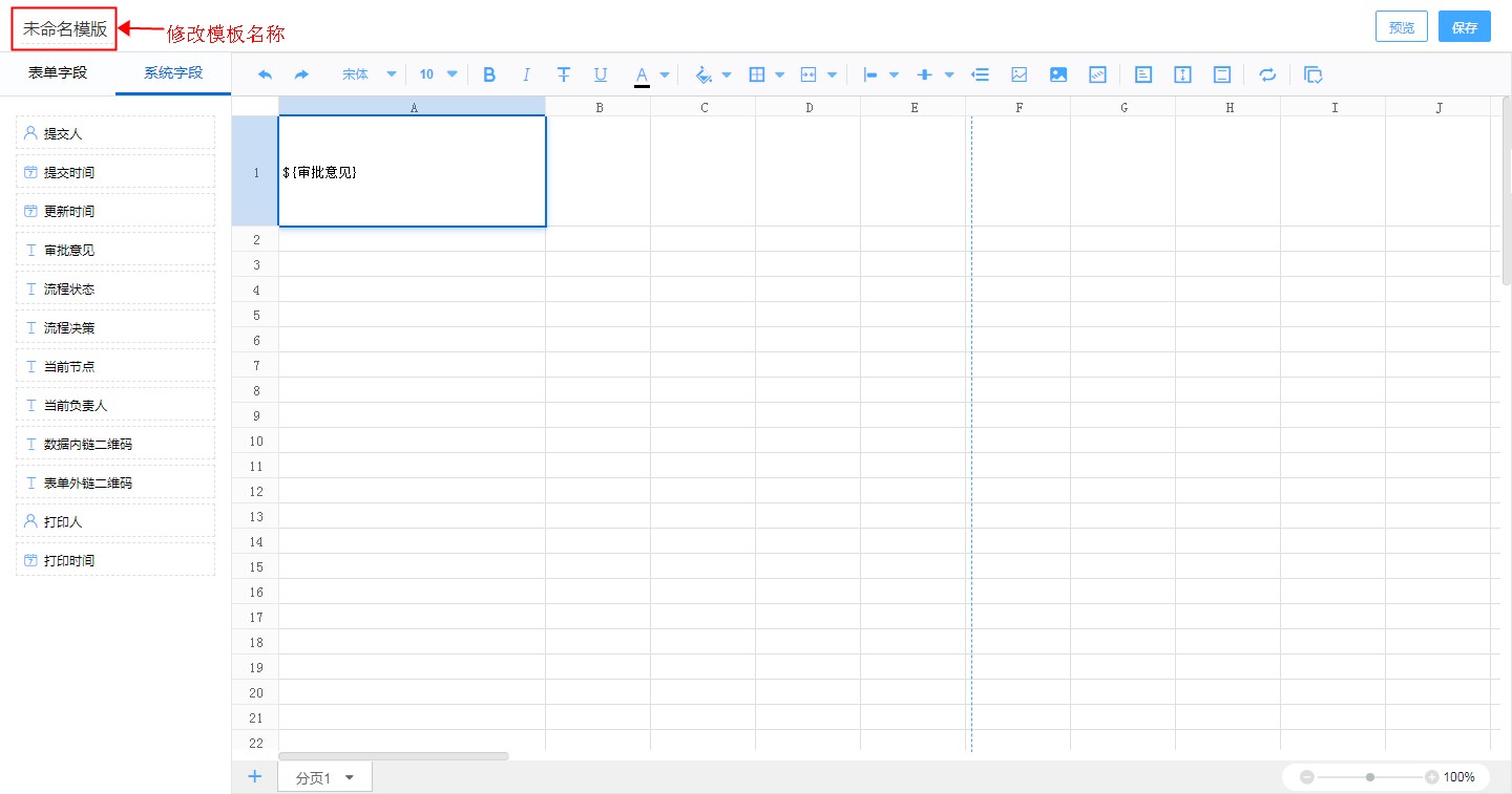 • 支持对模板设计区域进行缩放,缩放范围[10%,400%],默认为100%;