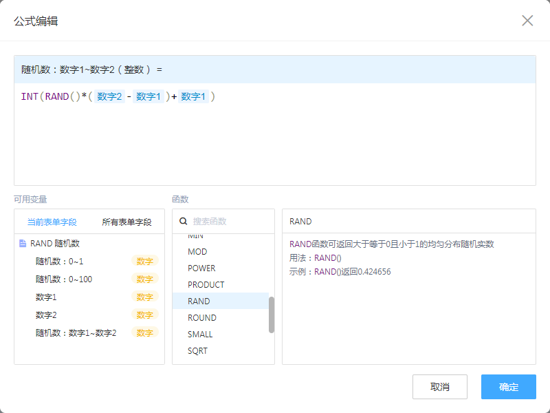 ①、“数字2 - 数字1”得出需要随机数的范围值。(包含小数)