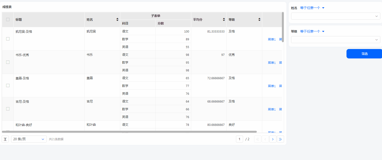 除了以上基础的设置,数据表还支持如下高级功能的设置