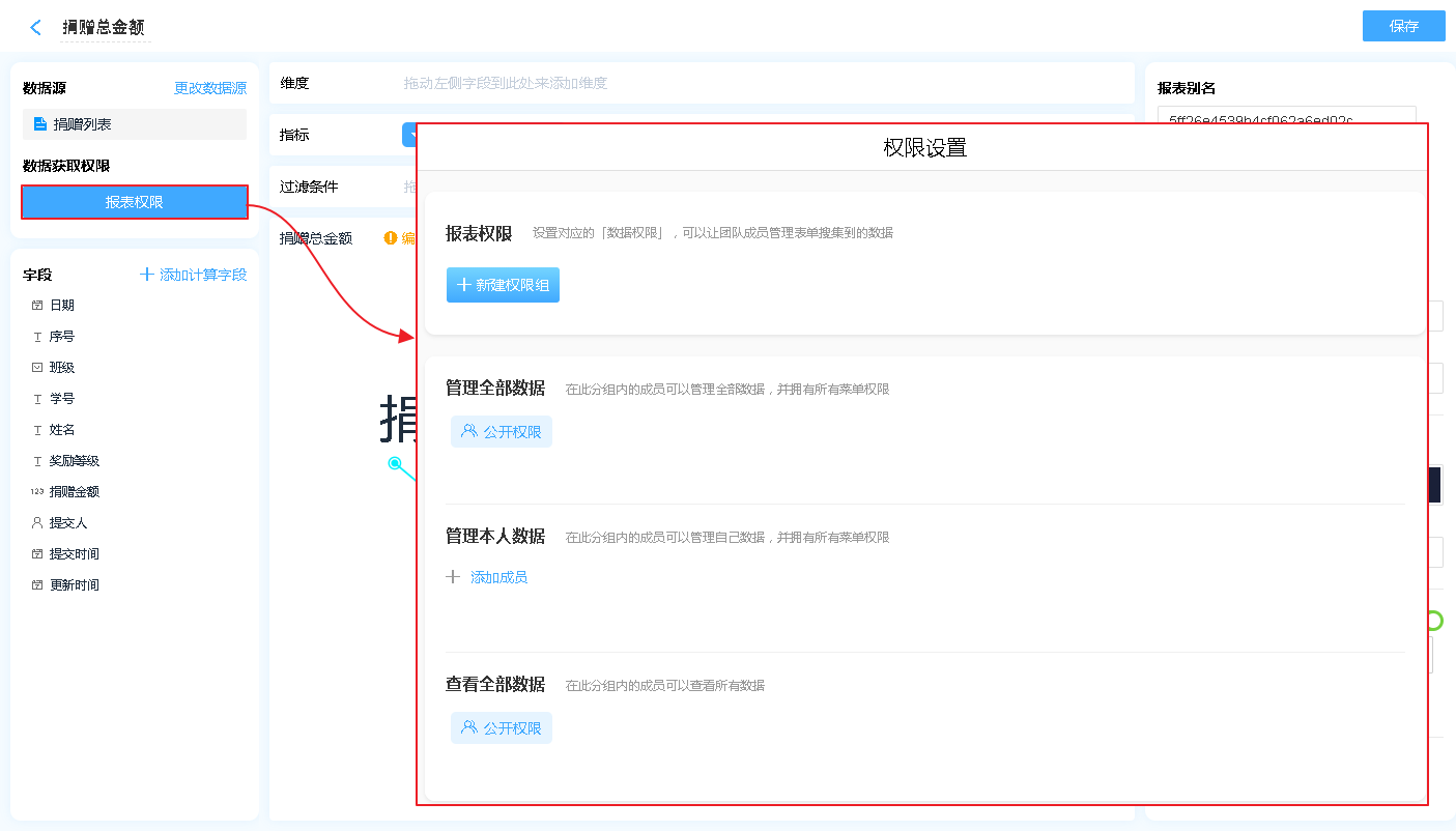 报表权限是指该报表的数据哪些人可以操作报表的数据,分别有什么操作权限。
