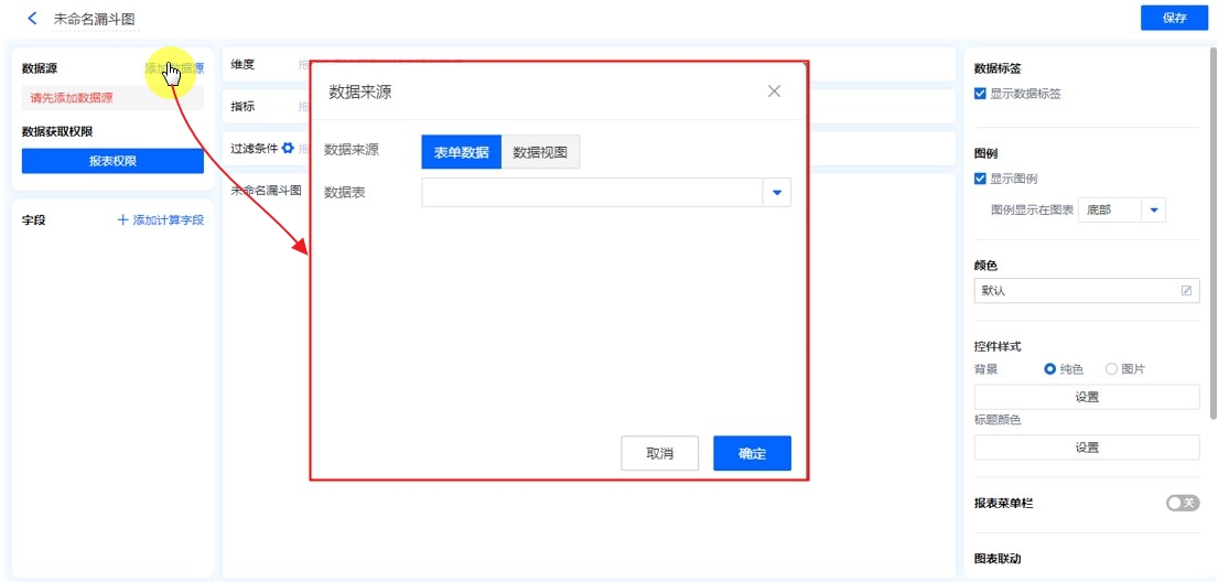 数据源就是指当前漏斗图的数据来源,可以是表单、数据视图。
