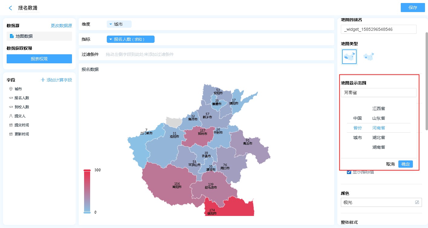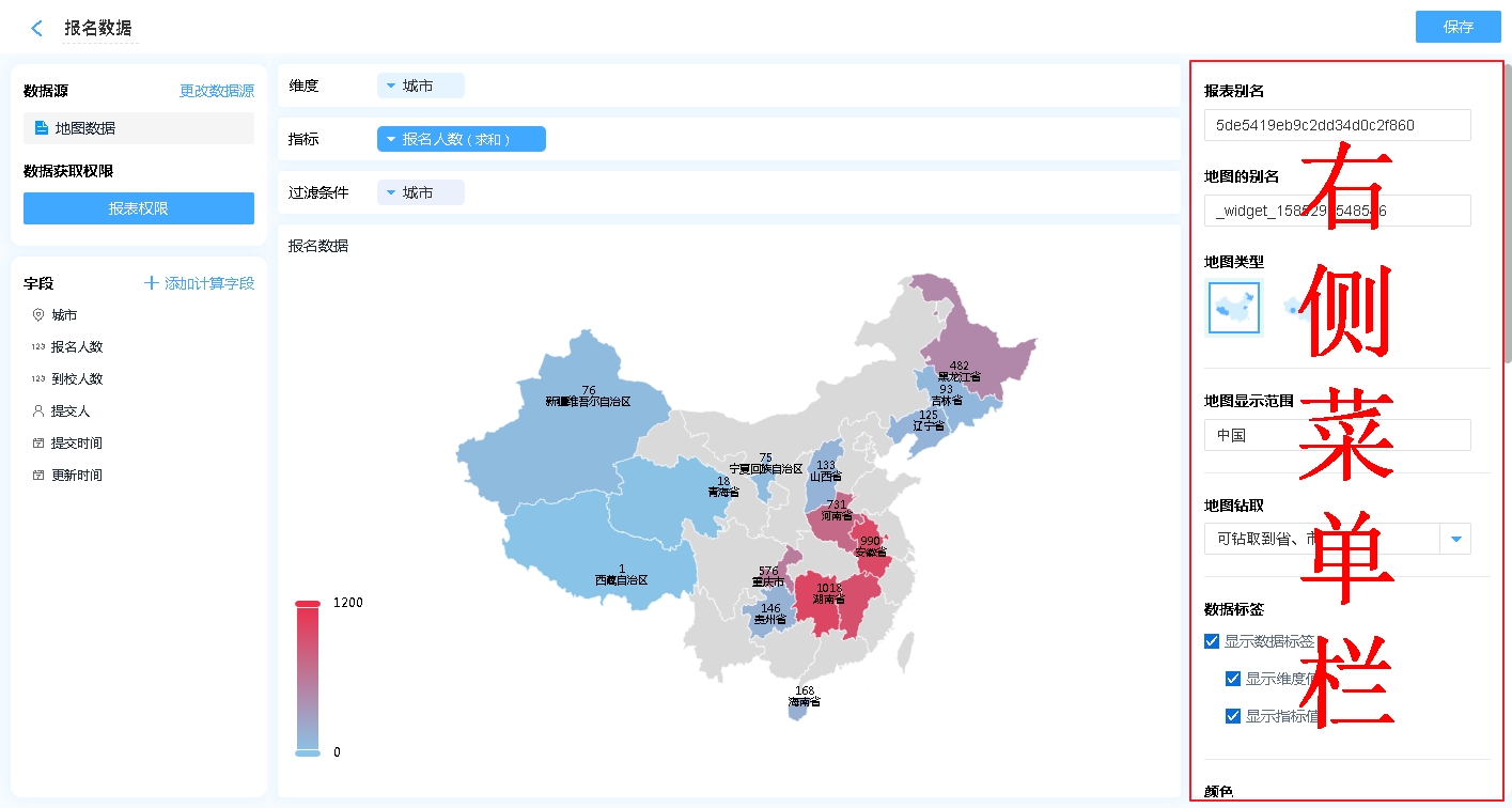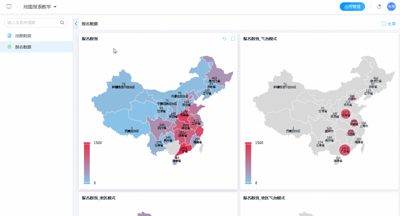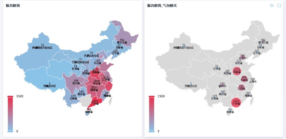 地图报表主要用来统计不同区域的数据,进行数据分享;