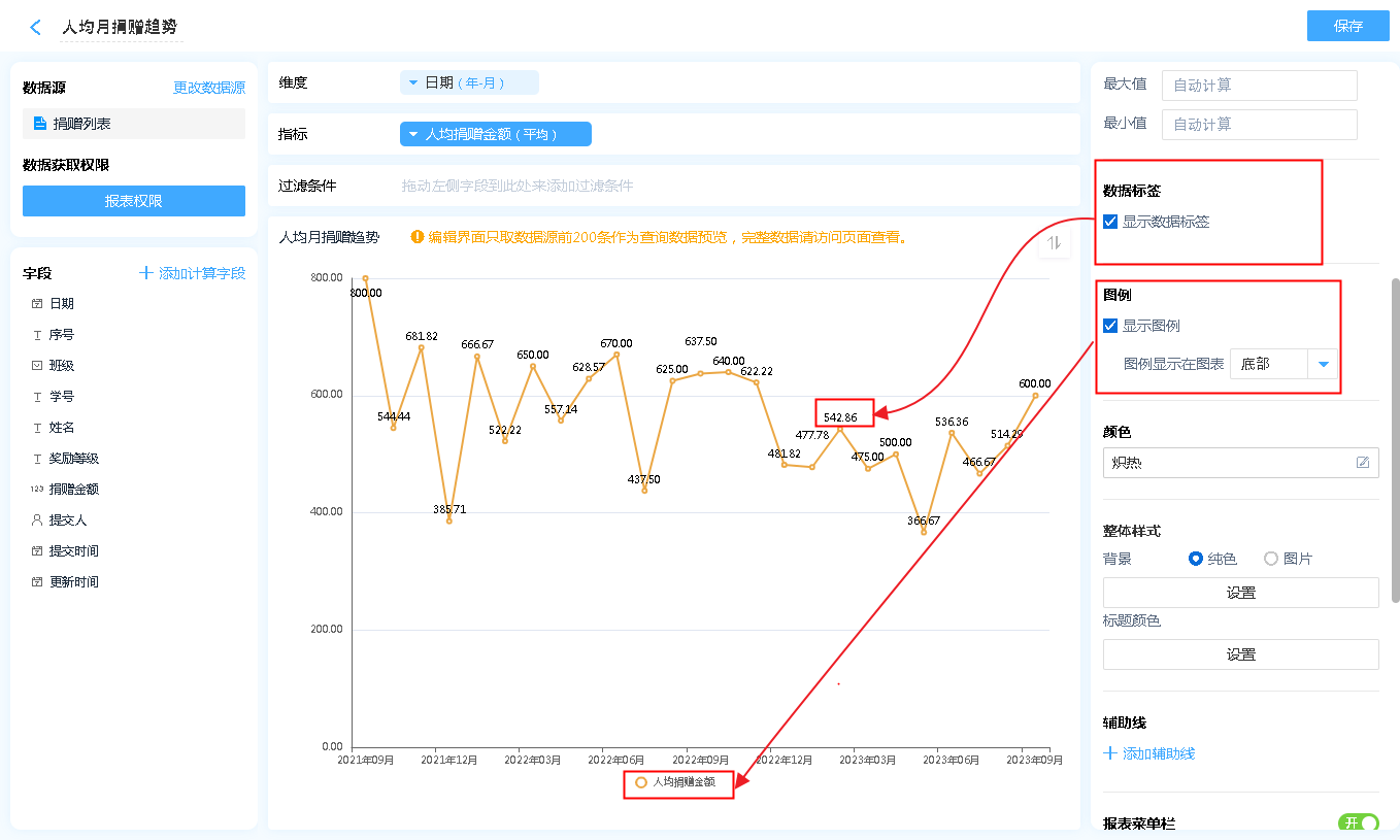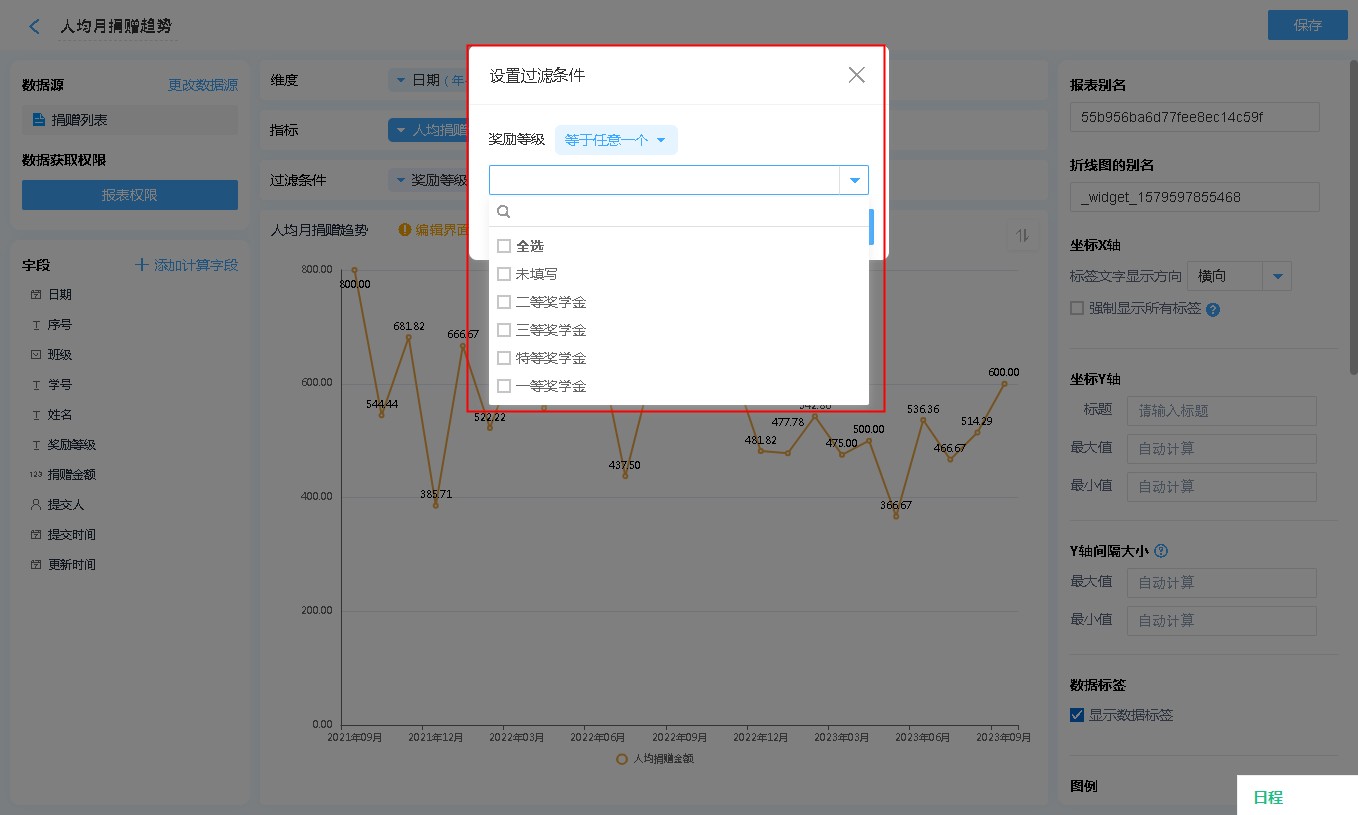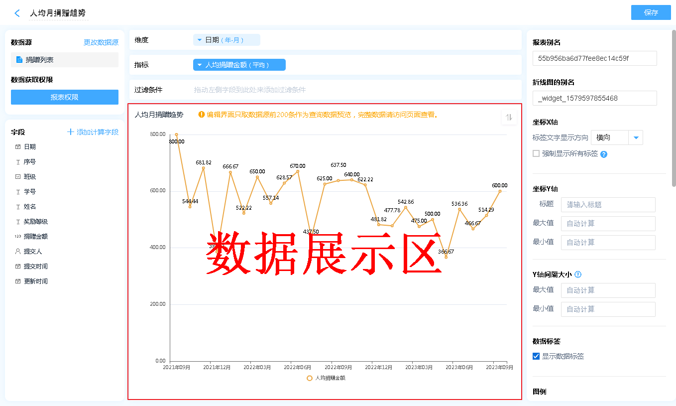 数据源就是指当前折线图表的数据来源,可以是表单、数据视图。