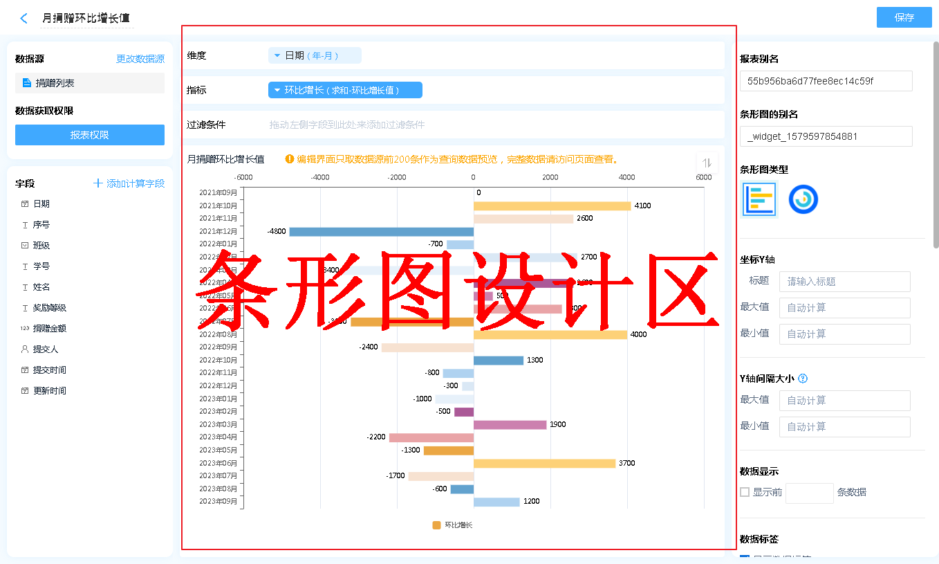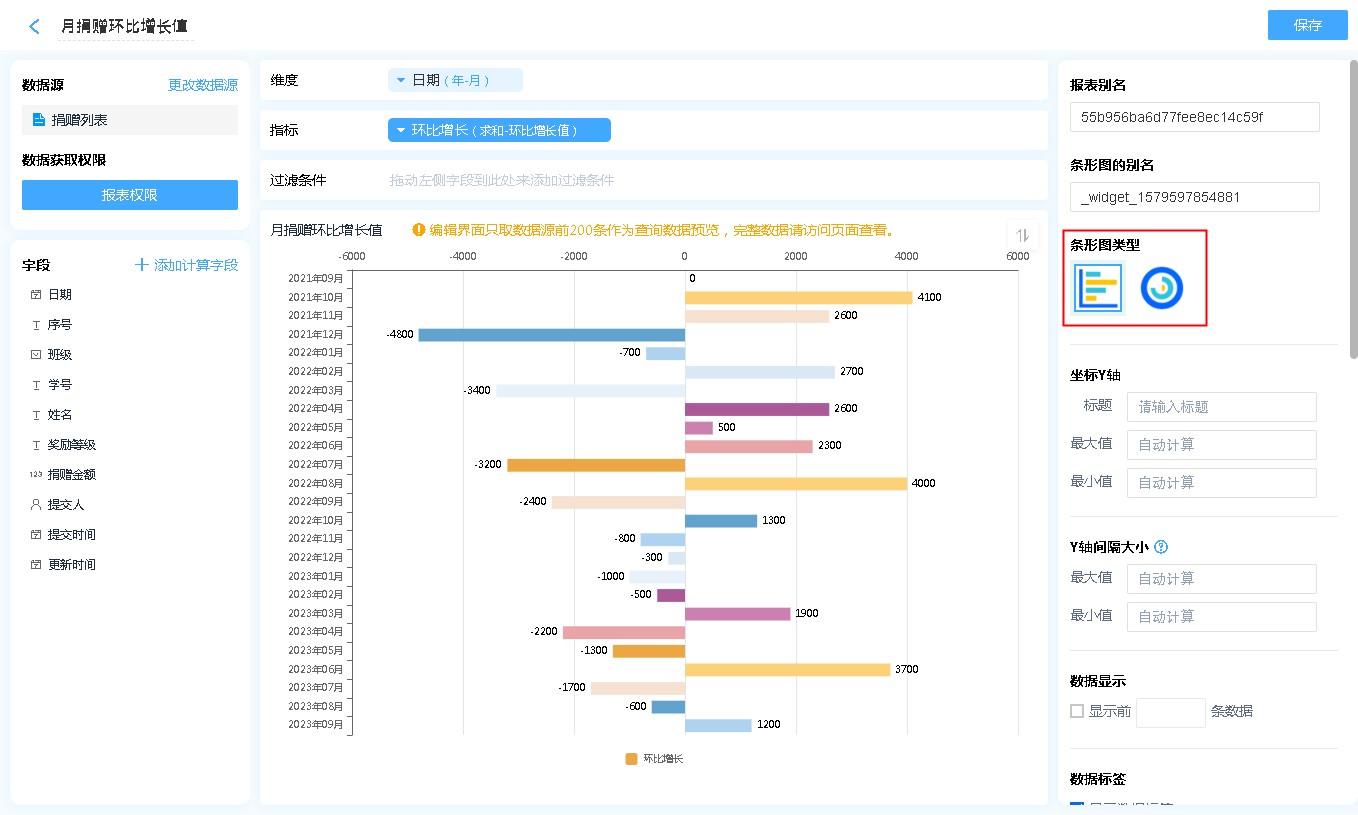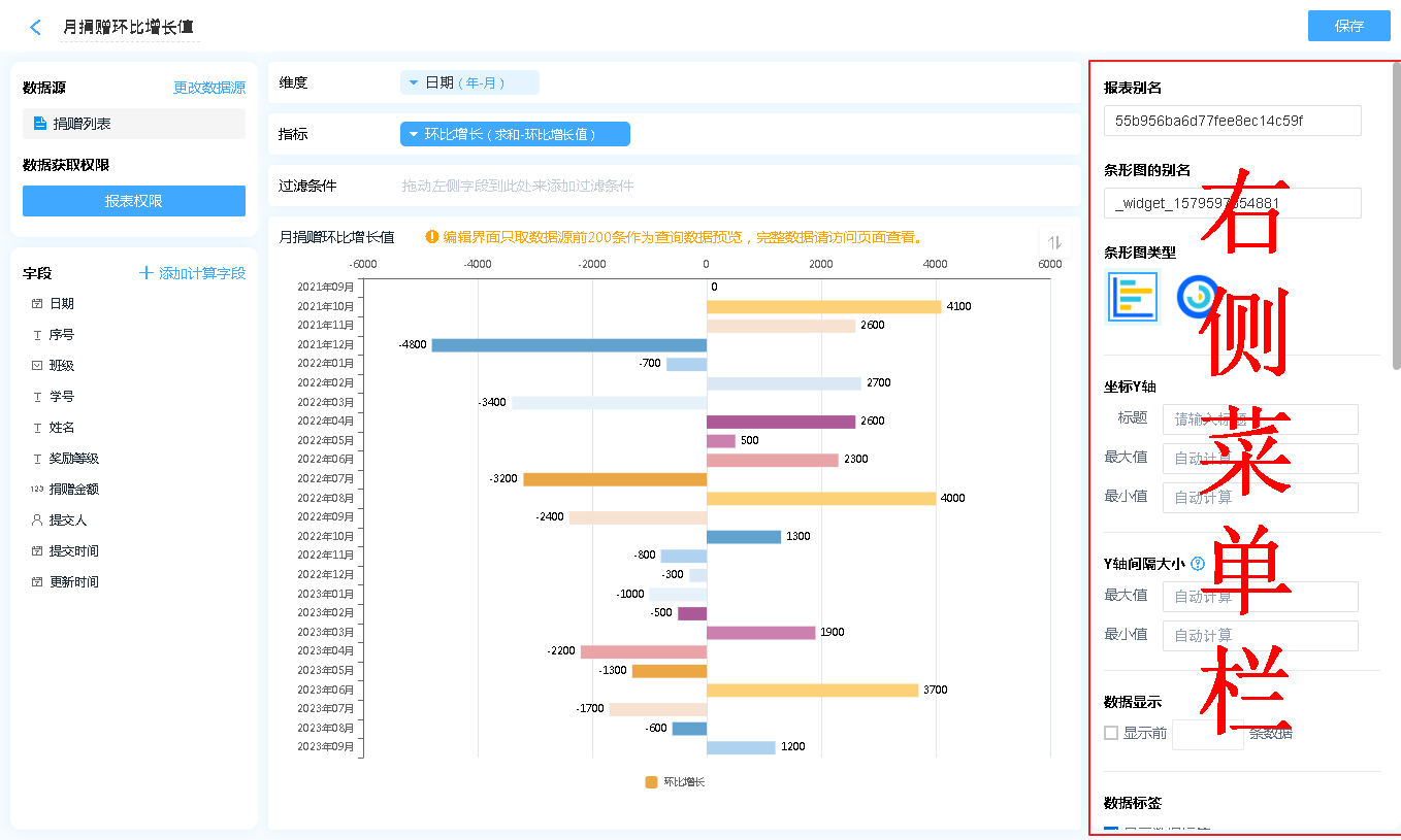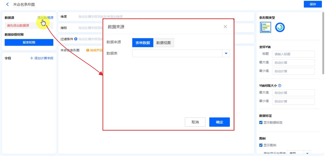 数据源就是指当前条形图表的数据来源,可以是表单、数据视图。