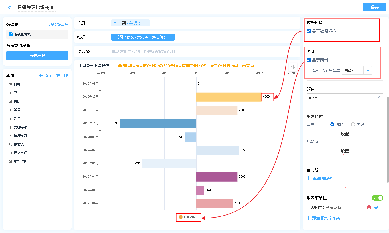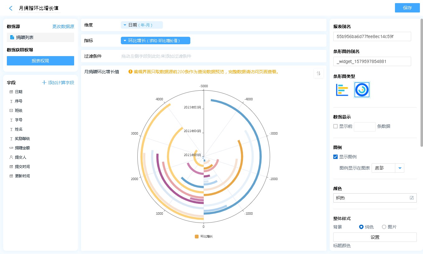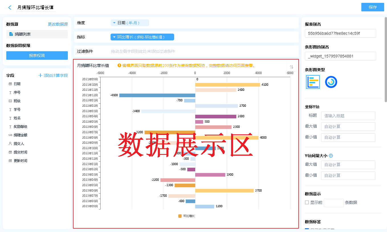 数据源就是指当前条形图表的数据来源,可以是表单、数据视图。