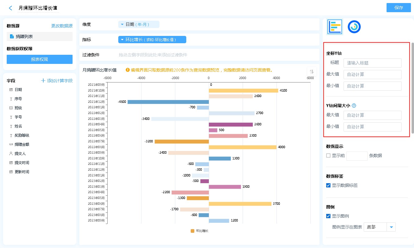 • 当Y轴刻度过多时,会自动隐藏掉部分刻度的坐标值,这样报表展示会更美观。