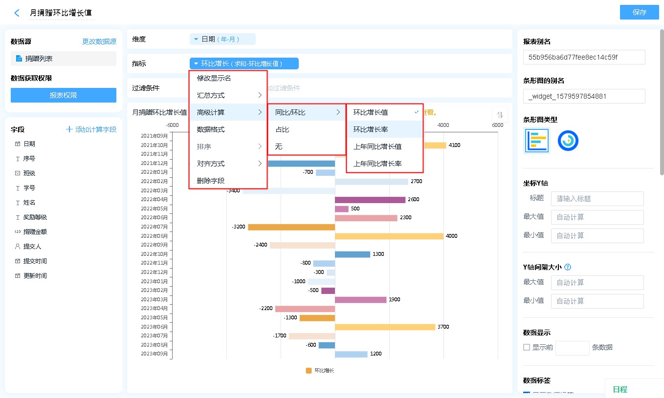 • 高级计算:高级计算可进行同环比、占比的计算,详见同环比和占比。