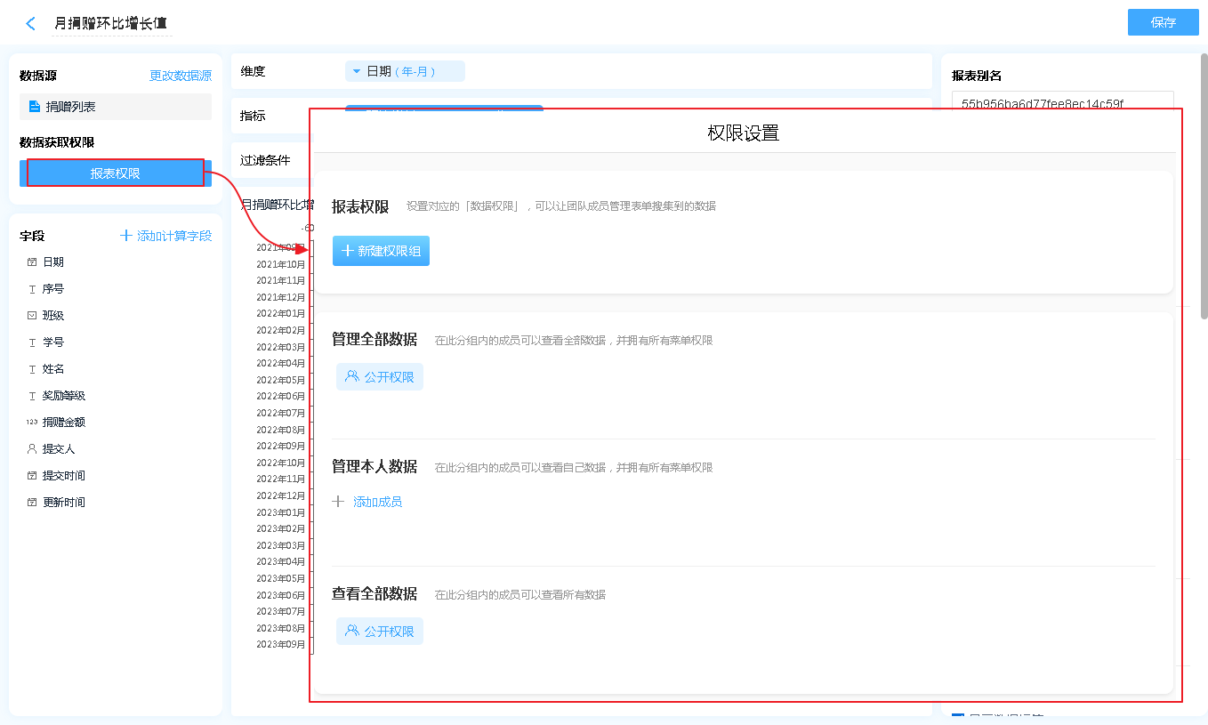 报表权限是指该报表的数据哪些人可以操作报表的数据,分别有什么操作权限。