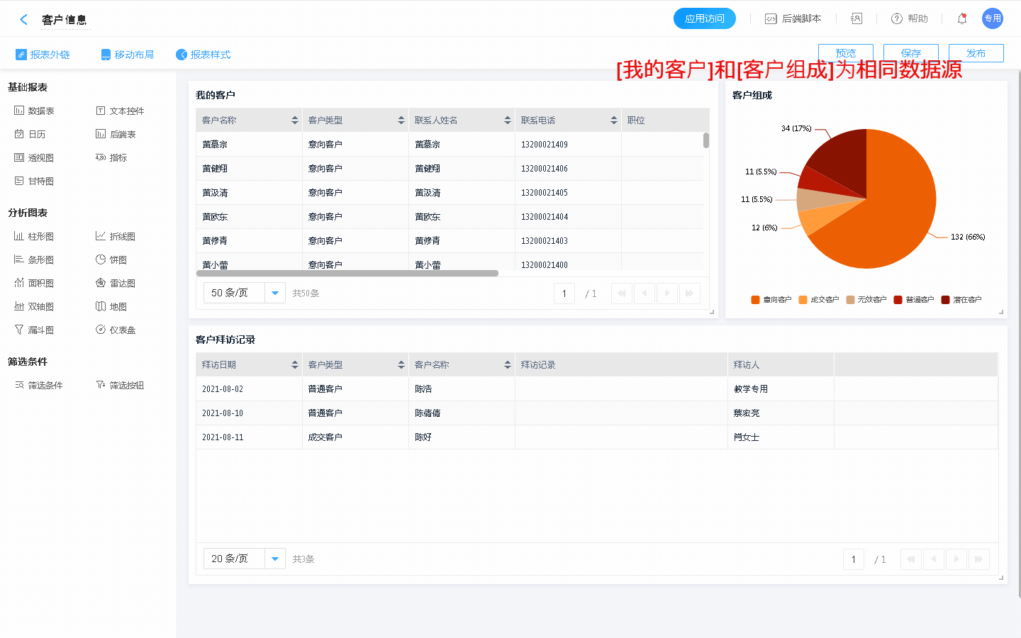 筛选条件在设置时可选择生效的报表,如数据源来自相同表单,则筛选条件直接生效;