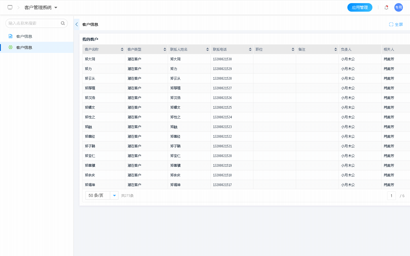 3、此时,数据表中只显示负责人为当前用户的数据。