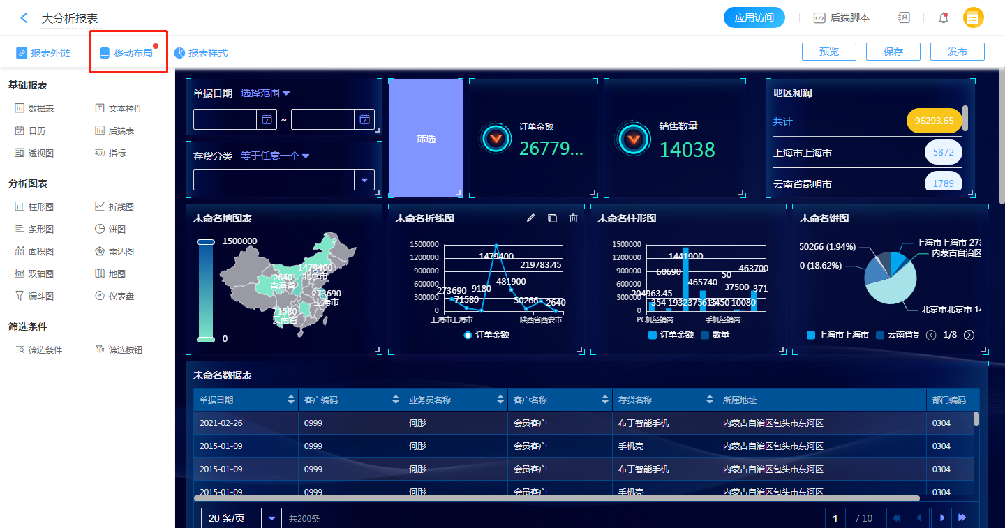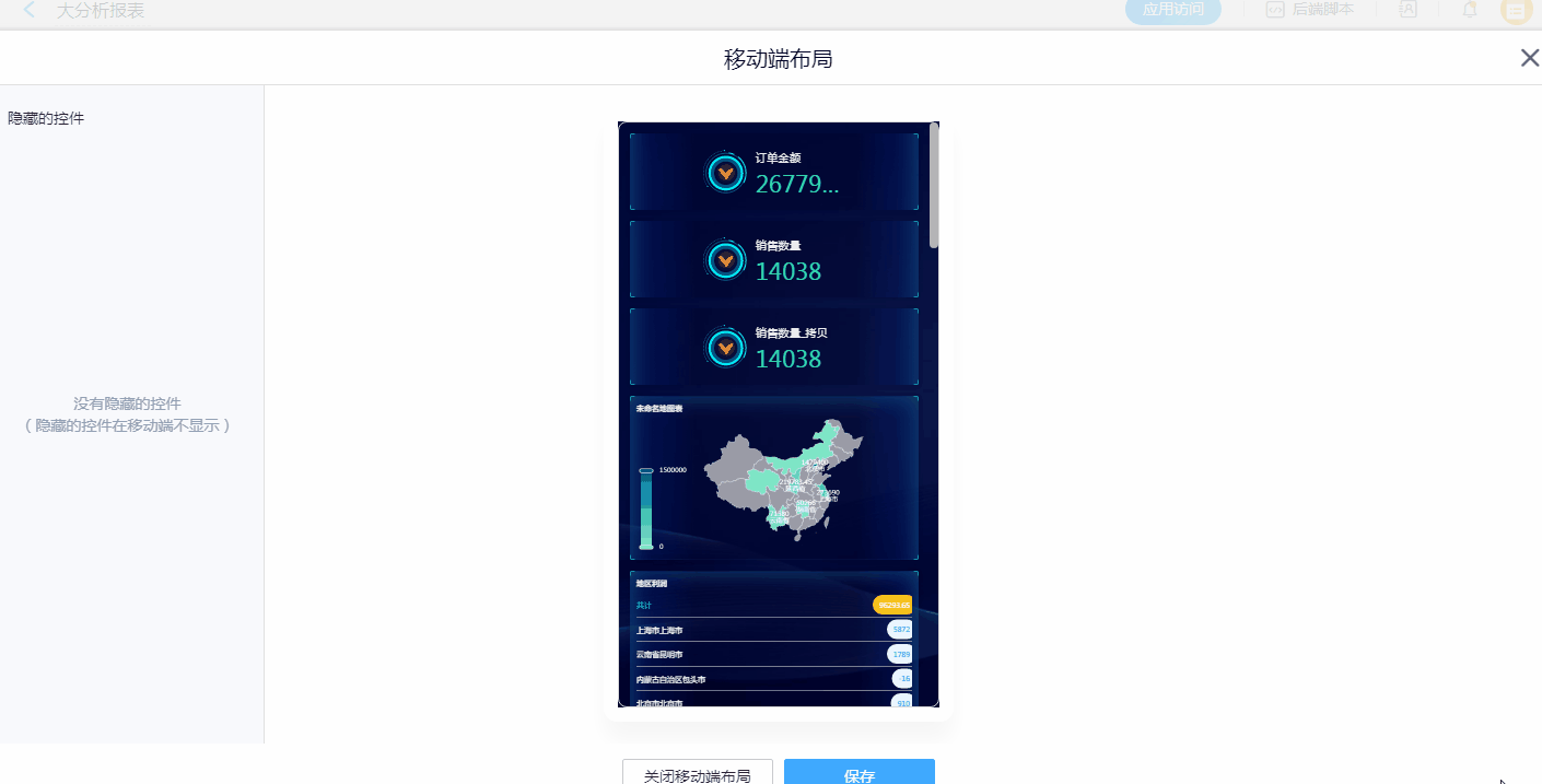 - 移动布局只影响报表在移动端的展示,不影响报表在PC端的展示。