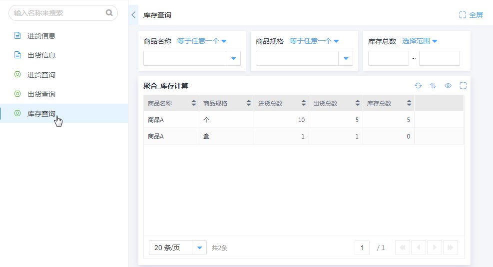 库存数量 数字类型 来源:根据名称与规格,关联[聚合表_库存计算]中的库存总数