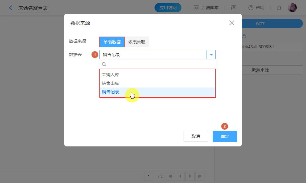 选择需要聚合计算的表单。