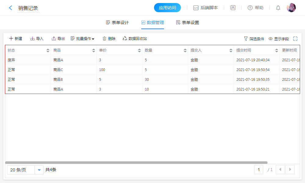 • 应用内表单管理