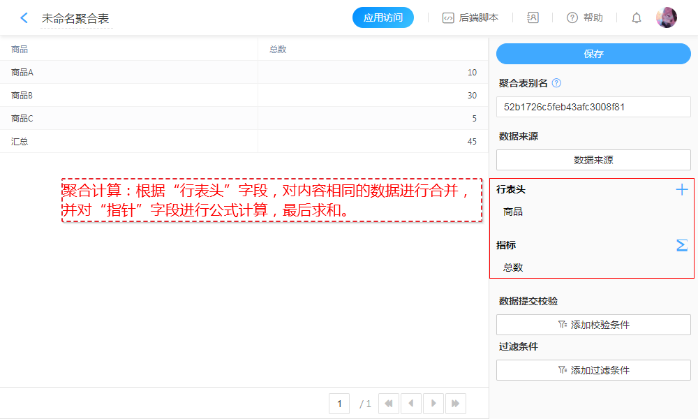 应用管理(进入应用设计页面) > 设置 > 聚合表