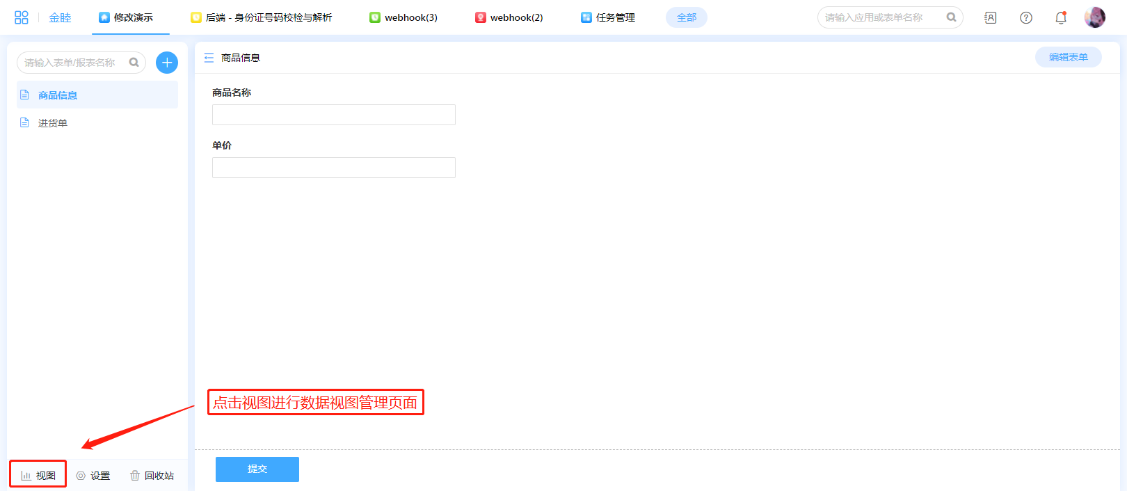 ② 编辑视图 打开视图设计界面。
