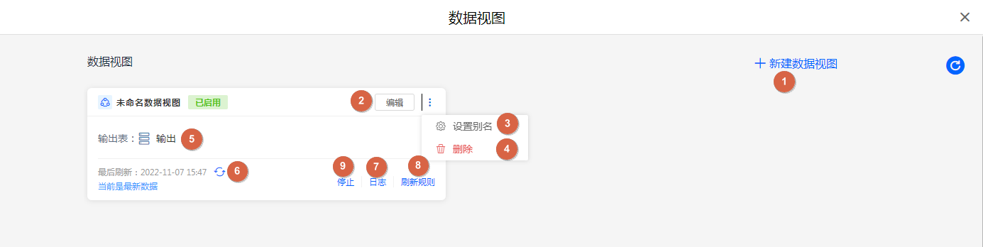 ⑨ 启用/停用 启用/停用数据视图;