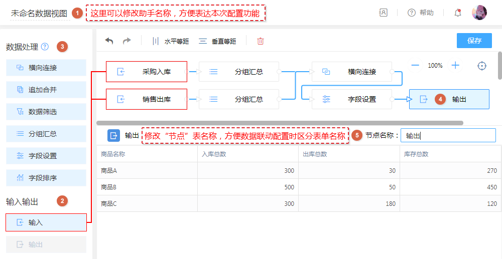 ② 输入节点 可配置多个,引用真实表数据进行视图处理。
