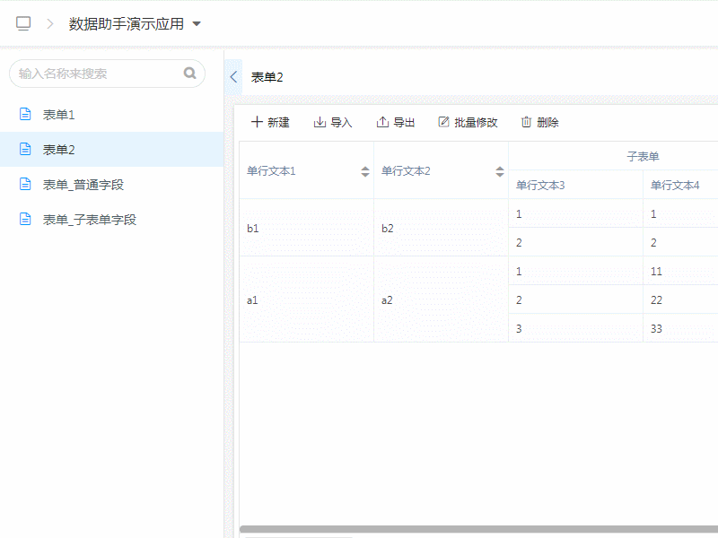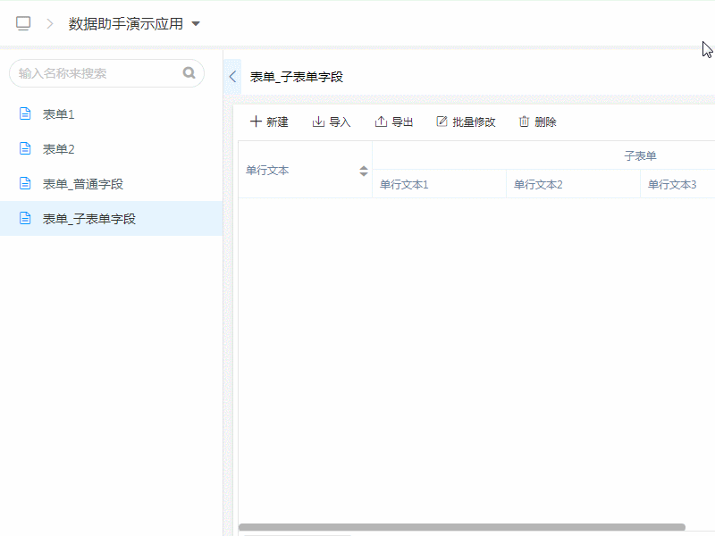 • 数据助手子表单