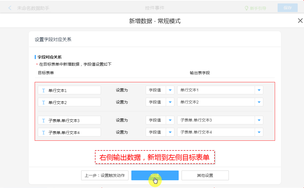 把“输出表”的数据新增至其他表单。